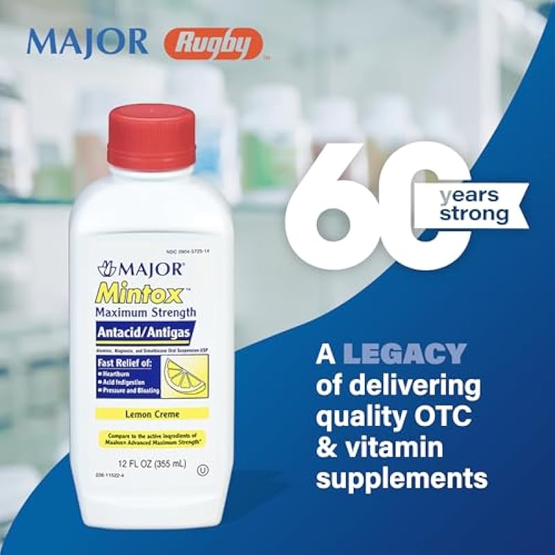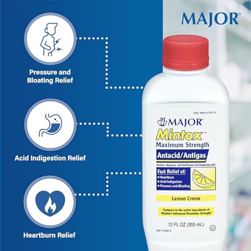 - MAXIMUM STRENGTH ANTACID: Major’s Mintox is an antacid that relieves heartburn, acid indigestion, sour stomach, and symptoms referred to as gas.