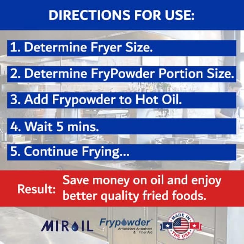 - BOOST FLAVOR, CUT COSTS & OPTIMIZE COOKING PERFORMANCE – FryPowder Oil Stabilizer & Filter Aid has been a trusted solution for over 20 years in maintaining cleaner, longer-lasting frying oil. Just add it to hot oil before each 6–8 hour frying session to reduce smoking, foaming, and carbon buildup. This high-performance formula enhances food appearance and flavor while accelerating cooking times. Perfect for restaurants, food trucks, commercial kitchens, and catering businesses, FryPowder extends oil life, improves food quality.