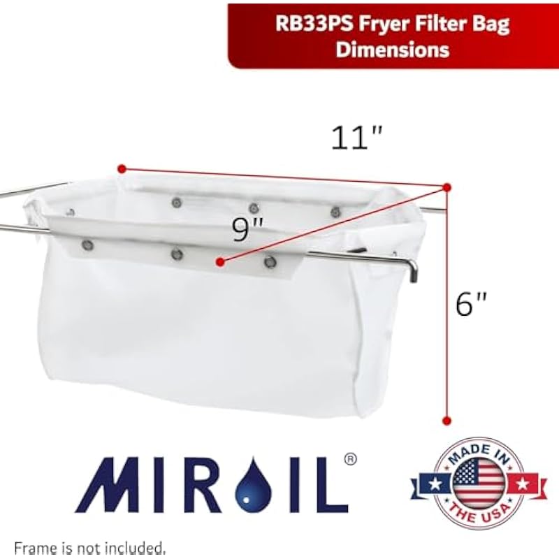 - CHEMICAL-FREE, HEAVY-DUTY & FOOD-SAFE FILTRATION – MirOil’s premium fryer oil filter bags are Made in the USA and built to deliver safe, reliable, and high-performance filtration for commercial kitchens, restaurants, and food service operations. Free from harmful chemicals, these high-quality filter bags ensure cleaner oil and healthier, better-tasting fried foods. Engineered to remove food particles and sediment effectively, they help extend the life of your cooking oil, minimize waste, and maintain consistent frying quality.