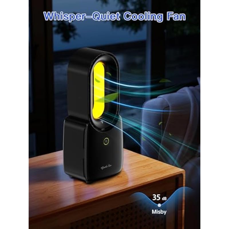 - 【Safe Bladeless Fan Design】This desktop fan adopts a bladeless design and turbocharging technology, which generates strong wind by inhaling air to provide a comfortable cooling experience. The bladeless air supply eliminates the risk of traditional fan rotation and reduces the risk of accidental touch. It is especially suitable for families with children to create a safer and cleaner environment
