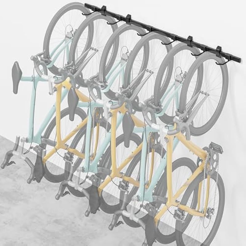 - 【EFFICIENT BICYCLE STORAGE】 Equipped with 6 bike hangers on an extended 78.5-inch rail, the monTEK wall-mounted bike rack garage surpasses standard lengths on the market, ensuring spacious and tidy bike storage. By lifting the bicycles off the ground, it liberates valuable floor space in your garage, making organization and cleaning a breeze. Exceptional space-saving benefits make it the perfect choice for garages, storage rooms, apartments, and beyond. The monTEK garage bike rack wall mount – the ideal solution for streamlined bike organization!