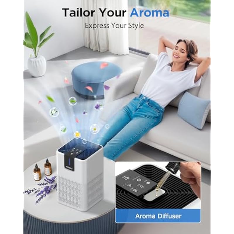 - Smart Air Quality Monitor & Auto-Adjusting Mode: The air cleaner features a built-in PM2.5 sensor that tracks real-time air quality, displaying results on an intuitive screen. In Smart Auto Mode, the large room air purifier automatically adjusts fan speed to maintain optimal air purity, ensuring you always breathe safely