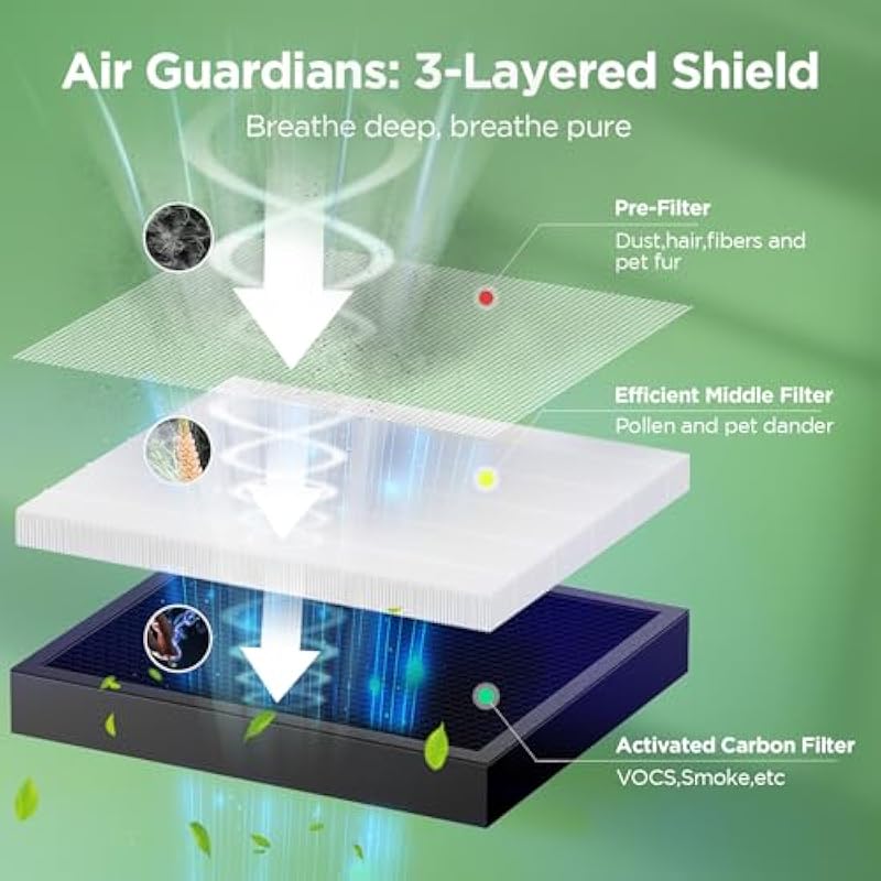 - Enhanced Filtration Capabilities: Equipped with advanced HEPA and activated carbon layers, our replacement filter captures up to 99.97% of harmful particles like dust, pollen, pet dander, smoke, and even harmful VOCs (volatile organic compounds).