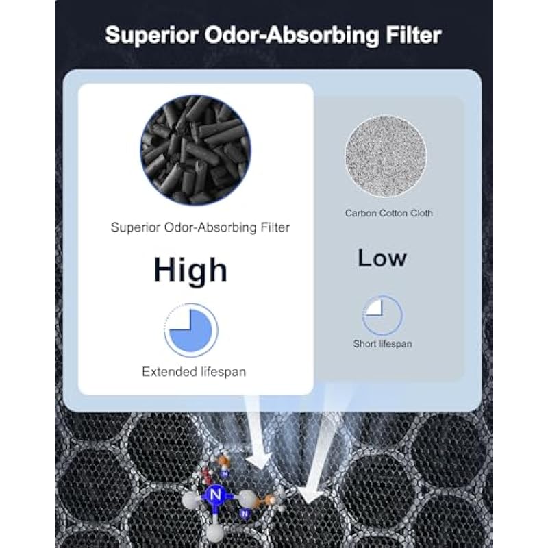 - UPGRADED ACTIVATED CARBON FILTER-MOOKA PR1 air purifier adopts the upgraded activated carbon filter, which makes the purification efficiency higher and more effective. More activated carbon pellets help absorb a bad odor such as pet odors, fumes and VOCs.