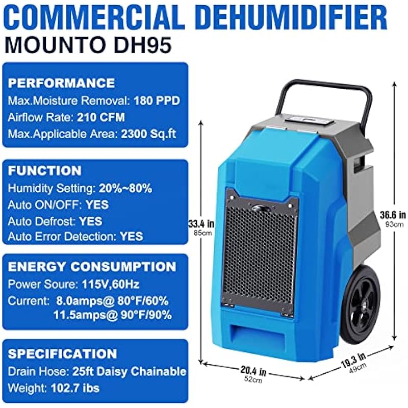 - HIGH-EFFICIENCY PERFORMANCE: Designed for water damage restoration projects with a high-efficiency rotary compressor ensuring maximum moisture extraction and reliability. This commercial dehumidifier is a powerhouse for any dehumidification needs.
