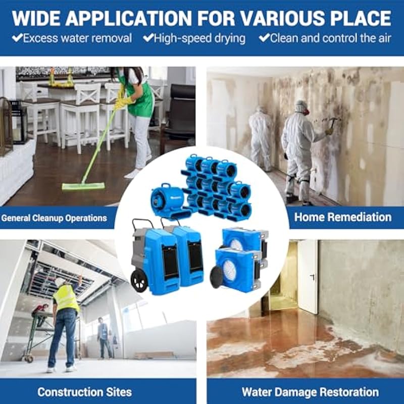 MOUNTO Water Damage Restoration Combo Package Deals (6xAir Mover, 1X Air Scrubber, 1X LGR Dehumidifiers)