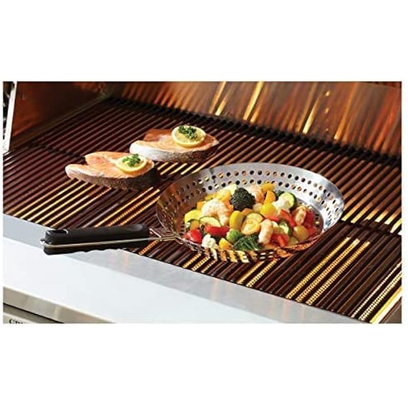 - EFFORTLESS & CONVENIENT GRILLING – Simplify your grilling routine with this all-in-one stainless steel grill basket, skillet, and vegetable grilling pan. No more juggling stovetop pans—just place it directly on your outdoor grill to cook vegetables, seafood, meats, and more with ease. Whether used as a veggie grill basket, fish grill basket, or stainless steel grill pan, it enhances flavor while preventing small foods from falling through the grates. Perfect for backyard BBQs, camping, and tailgating.