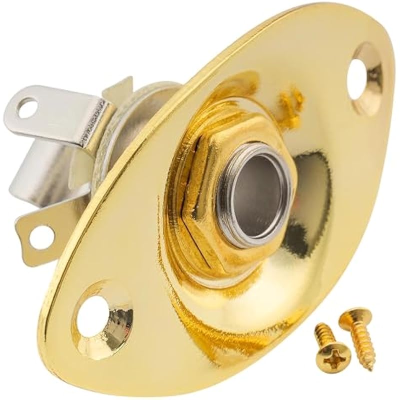 Musiclily 1/4″ Oval Guitar Input Jack Output Plate Jackplate Socket for Fender Strat Tele, Gold