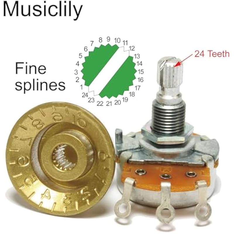 - Inch size, fine 24 splines, will fit most American made 6mm (15/64 inch) split shaft potentiometers like CTS/Fender/DiMarzio/Bourns, will NOT fit metric size potentiometers like Alpha