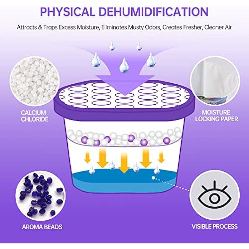 - 【EFFECTIVE DEHUMIDIFICATION】NATRUTH Lavender moisture absorber packets can efficiently remove excess moisture from the air and trap it in the box. With a large capacity of globular calcium chloride particles, these moisture absorber packets can significantly expand the dehumidifying area and maintain a comfortable atmosphere for longer.