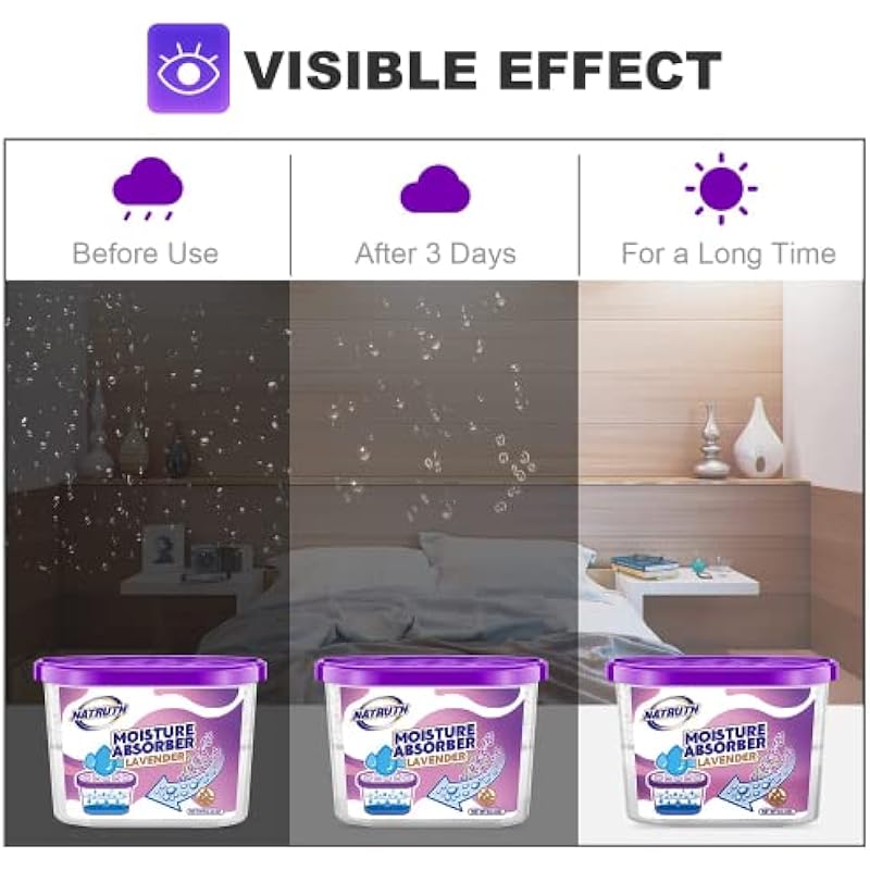 - 【DEODORIZATION & ODOR ABSORPTION】With Lavender Scent, Natruth closet moisture absorber has an excellent performance in eliminating odor while effectively trapping excess moisture.Free your nose!