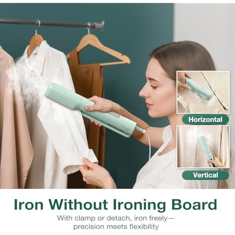 - [Meet Your 3 in 1 Ironing, No Board Needed] Get all the ironing done with this one tool that can press, steam, and iron. Press it to handle small spots like collars and cuffs, or detach the clamp and glide freely to smooth larger areas. A 180° rotatable head for all kinds of ironing situations!