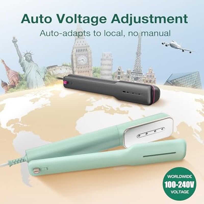 - [Global Voltage, Auto-Adjusting] Say goodbye to voltage hassles—this compact travel steam iron auto-detects and adapts to 100-240V global voltages. No adjustments needed,just plug in, steam up, and smooth out wrinkles anywhere your journey takes you.