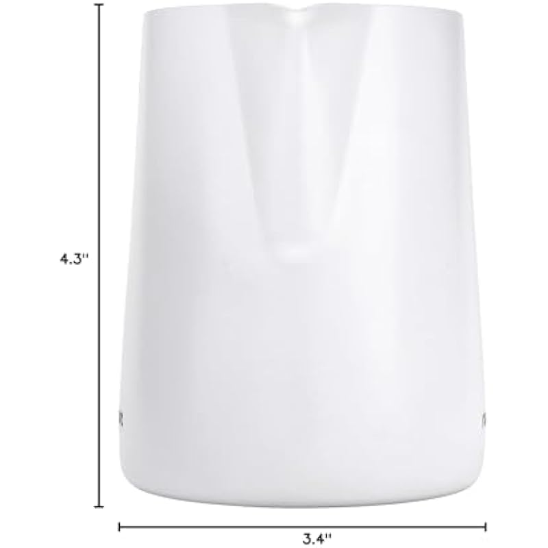 - MAKE PERFECT LATTE ART – The accurate spout is wide enough to balance a steam wand and a small part of exposed metal at the bottom of this milk froth cup allows the ability to touch and test the heat of the milk.