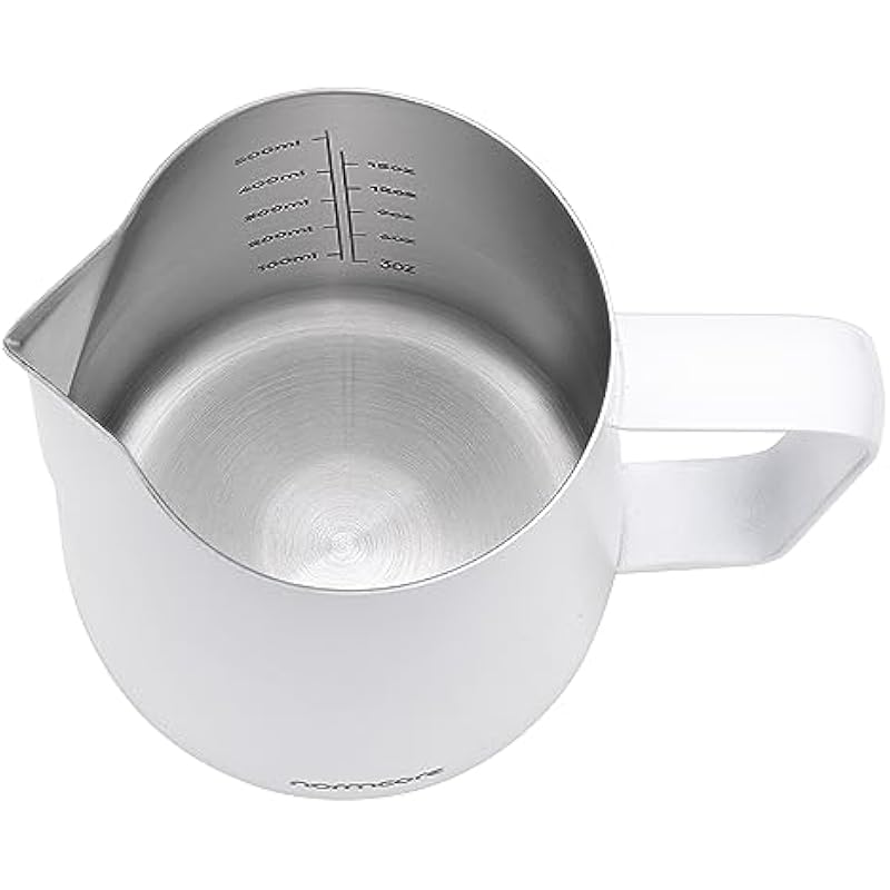 - FULL CONTROL AND PRECISION – The Normcore handleless frother pitcher has a unique handleless design to improve control and precision when pouring to provide much more flexibility when creating latte art.