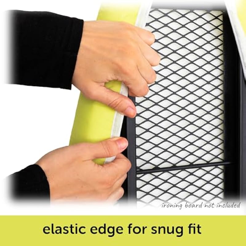 - EASY and SECURE FIT. A tailored nose pocket for a snug fit on your ironing board up to 15″ x 54″ (38 x 137cm) . Strong e1lastic edge and two straps hold the cover securely for a smooth, wrinkle-free surface reducing ironing effort