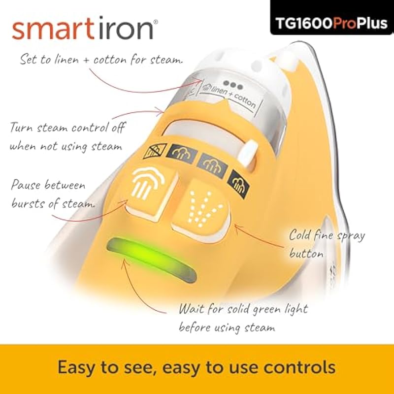 - SAFE AND EASY: Say goodbye to scorched fabric and repetitive wrist strain. Simply touch the handle and the TG1600+ lowers, ready to work. Take your hand off, and the Smart Ironn Auto-Lift system raises the iron, keeping it safely elevated above the fabric. Safer, faster, and easier on your shoulders and wrist—this is ironing, reinvented.