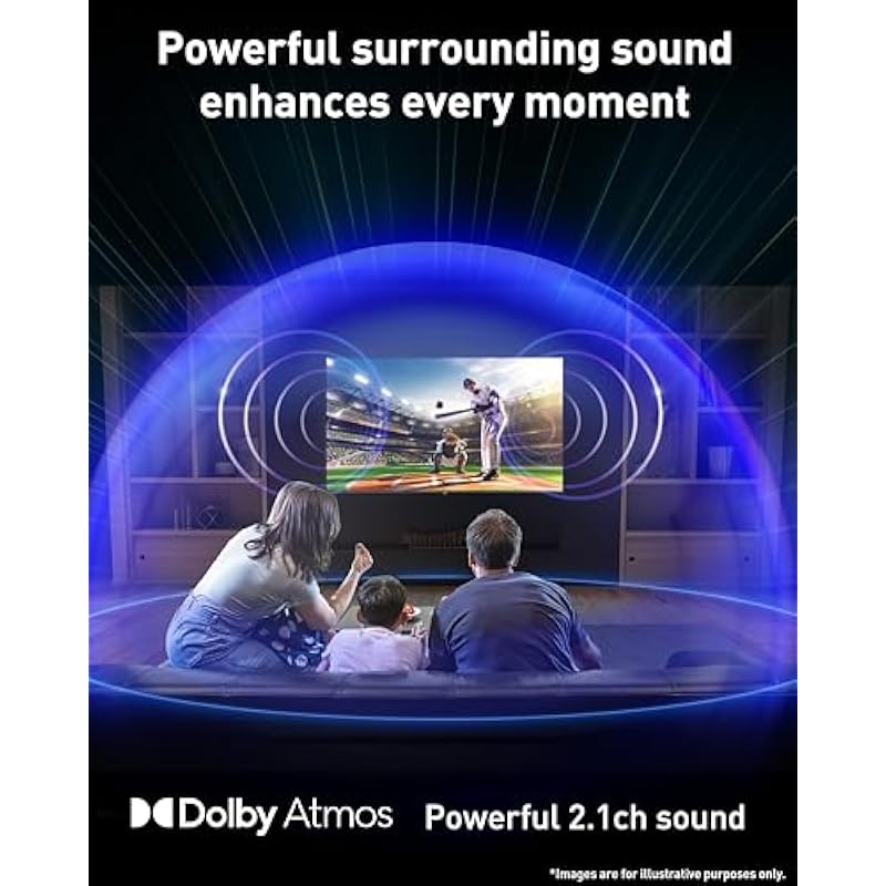 - Dynamic Theater Surround with Dolby Atmos: A dedicated built-in subwoofer delivers an enhanced low end frequency. Together with Dolby Atmos, sound effects are precisely placed in virtual space and time to envelope you in the atmosphere.