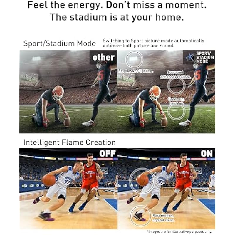 - Sport Mode and Stadium Mode: Immerse yourself in the game on your Smart TV with specially tuned picture and sound settings that recreate the excitement of live stadium viewing.