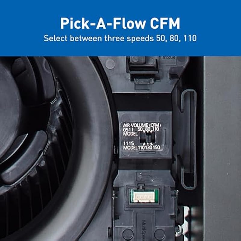 - Pick-A-Flow Vent Fan: This fan features our Pick-A-Flow airflow selector that allows you to boost your CFM at the flip of a switch when installing