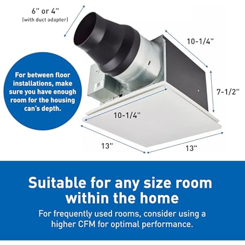 - Easy Installation: Flex-Z Fast Bracket simplifies installation with a single-hinge bracket for easy positioning so you don’t need to access your attic to install the fan and includes options for 4″ or 6″ ducting