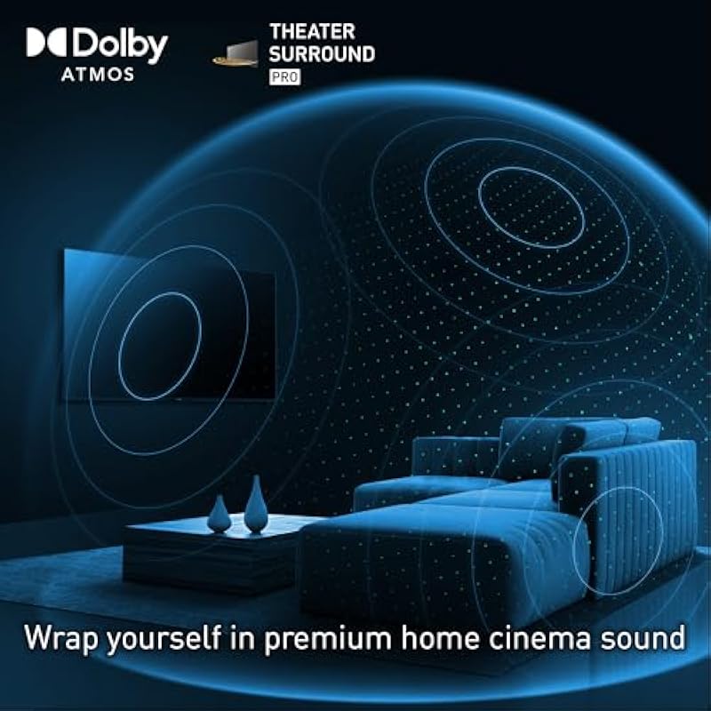 - Theater Surround Pro with Dolby Atmos: Impressive soundscapes, powerful bass with a built-in subwoofer, and crystal-clear dialogues. Together with Dolby Atmos, sound effects are precisely placed in virtual space and time to envelop you in the atmosphere.