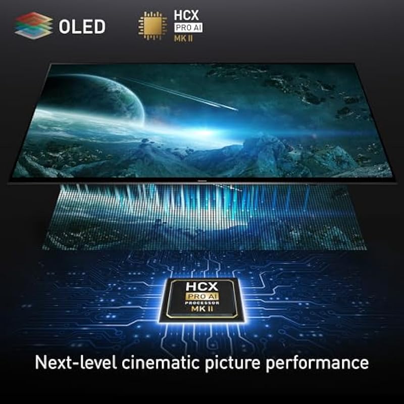 - A Smart TV with Next-level Cinematic Picture Performance: The core OLED panel and HCX Pro AI Processor MKII finesses colour accuracy, contrast and clarity for step-up picture performance.