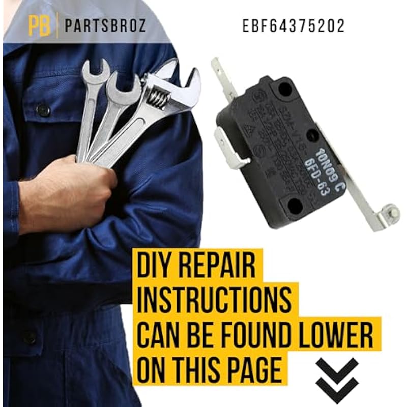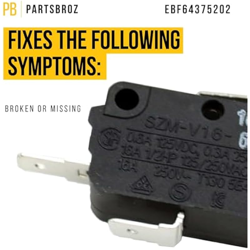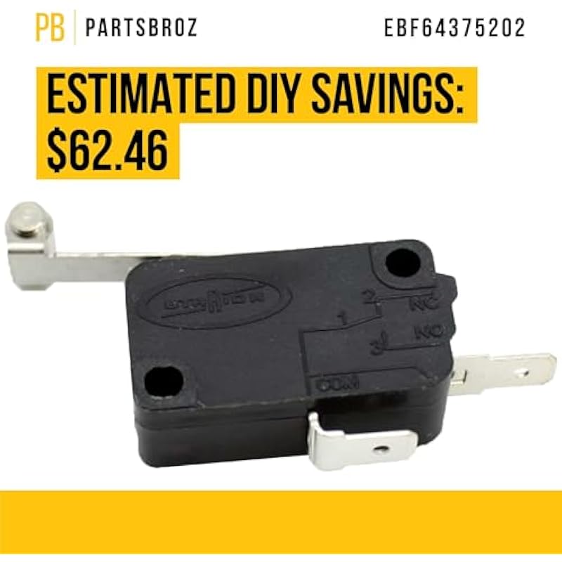 - EBF64375202 Micro Switch is a direct replacement for part numbers EBF64375202, AP6989906, 3W40025C, and PS16219431, offering a reliable fit for various appliance models.