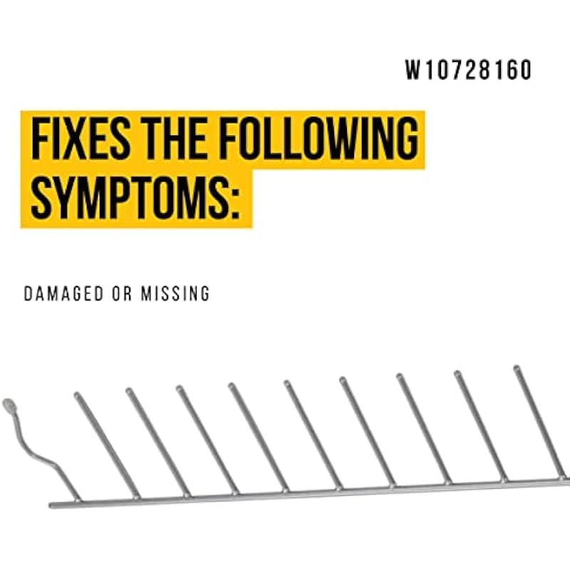 - W10728160 Tine Row – A high-quality equivalent for parts W10728160, AP5951430, WPW10082907, WP8051250, 8519589, 8051250, W10056272, W10082907, WP8519589, 3368621, 3368622, 3368625, 3368627, 3368631, 3370543, 3370561, 3375124, 3380620, 3387270, 8051257, 8268775, 8268776, 8274963, 8519648, 8519682, 9744552, and PS10057161.