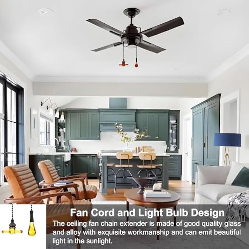 - Advantage: The ceiling fan chain extender is made of good quality glass with exquisite workmanship and can emit beautiful light in the sunlight. Heavy enough not to sway in the wind, making it easy to use. Comes with a connector for easy connection to the fan lamp. The length is suitable and can be reached by raising your hand, making it easy to find the switch.