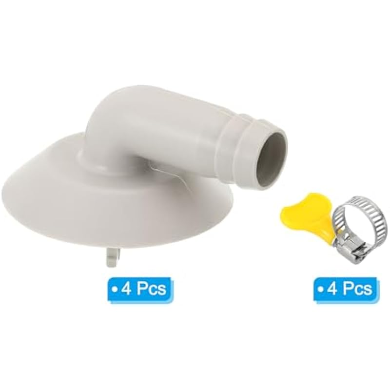 - Color: White; Material: Plastic; Suitable for 25mm Drain Outlet Hole.; Diameter (Connecting Hose Size):16mm/0.63″; Connector Size: 68x55mm / 2.7×2.2Inch (L*W); Packing List: 4 x Hose Connector, 4 x Clamp