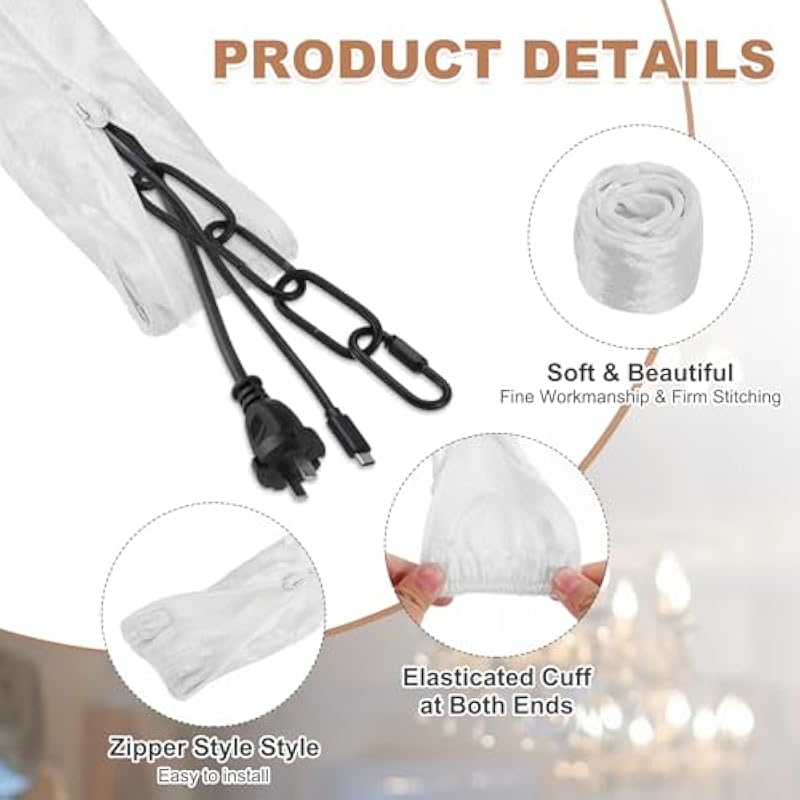 - Specification: Color: White; Material: Velvet Cloth; Size: 60 x 5cm / 2ft x 2inch (L*W); Style: Zipper; Packing List: 2 x Chandelier Chain Cord Covers