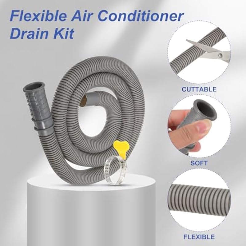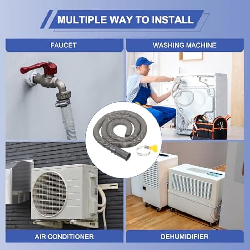 - Instruction:Designed with adapter head, allows you to connect it to drain pipe with diameter from 15mm to 20mm. The package comes with a clamp, fix the drain hose to the drain outlet of AC units with the clamp, which can help you quickly complete the installation without other tool