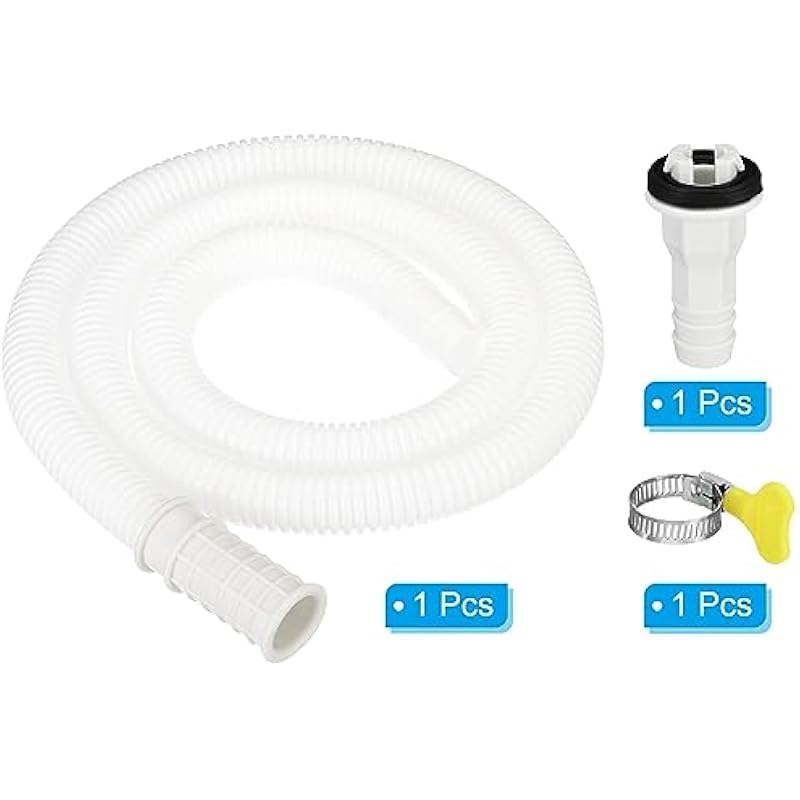 - Color: White; Material: Polyethylene; Suitable for 15mm Drain Outlet Hole; Hose Inner Diameter: 16mm / 0.63 Inch; Hose Length: 1m / 3.3ft; Connector Size: 50x25mm / 2x1Inch (L*W); Connector Outer Diameter: 14mm / 0.55Inch; Packing List: 1 x Drain Hose, 1 x Hose Connector, 1 x Clamp