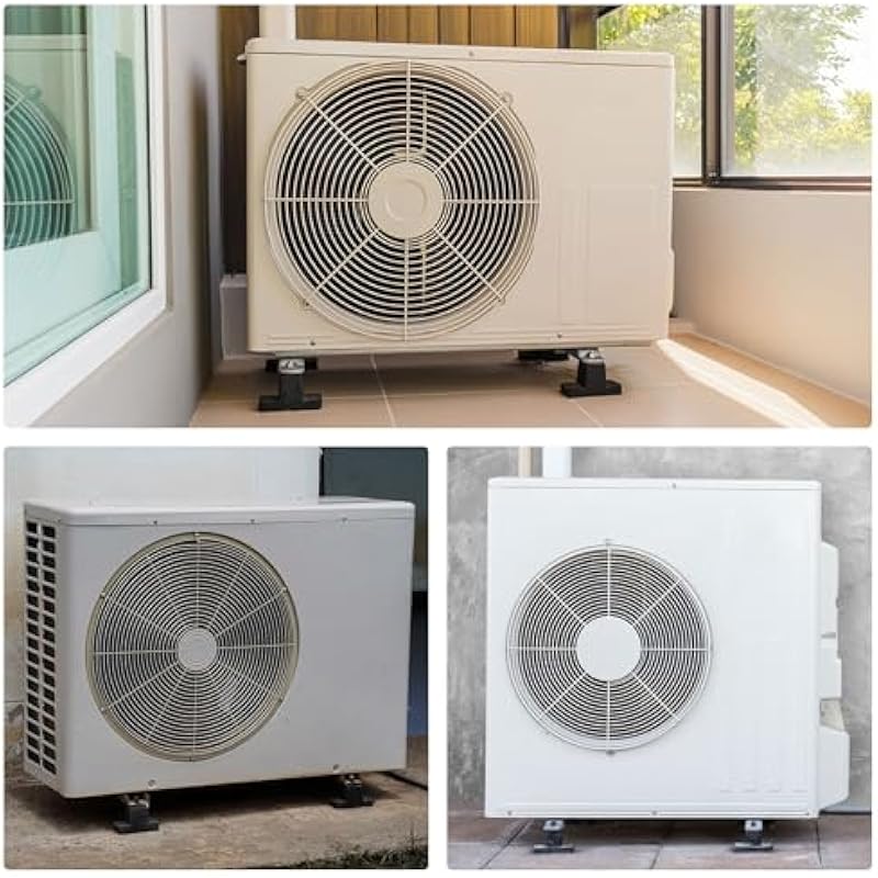 - Specification: Material: TPU Rubber, Stainless Steel; Color: Black; Bolt Thread Size: M10, 25mm/0.98inches; Base Size: 103x103mm/4.06×4.06inches(LxW); Height: 81mm/3.19inches; Height (Without Base): 61mm/2.4inches; Support Weight Range: ≤1000lbs; Suitable Range: 1P/1.5P/2P/3P/5P Air Conditioner; Package List: 4Pcs x Mounting Rubber Pads Bracket