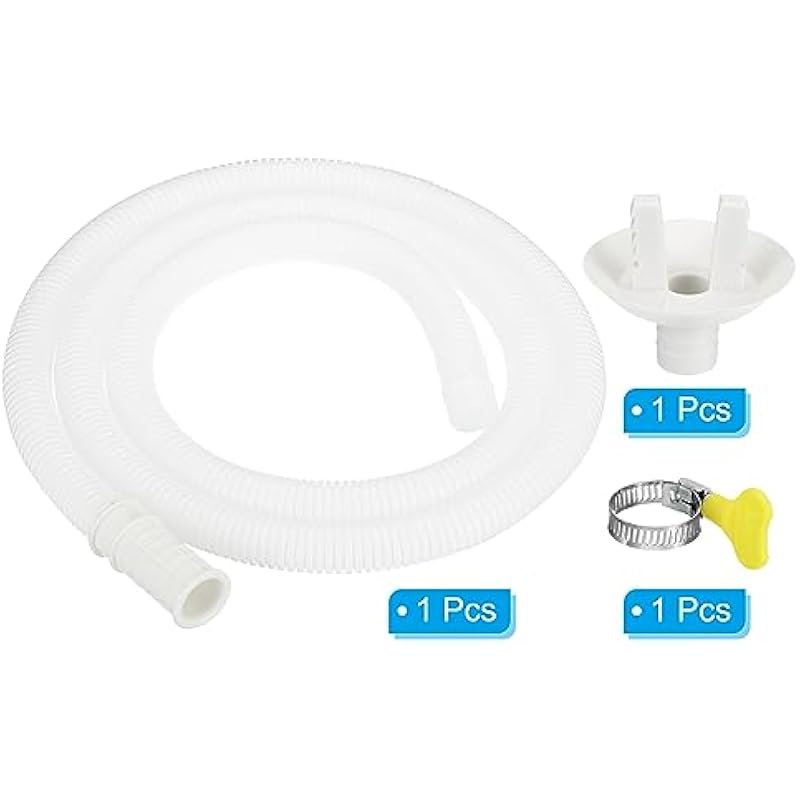 - Color: White; Material: Polyethylene; Suitable for 27mm Drain Outlet Hole; Hose Inner Diameter: 16mm / 0.63 Inch; Hose Length: 1.5m / 4.9ft; Connector Size: 46x52mm / 1.8x2Inch (L*W); Connector Outer Diameter: 16mm / 0.63Inch; Packing List: 1 x Drain Hose, 1 x Hose Connector, 1 x Clamp