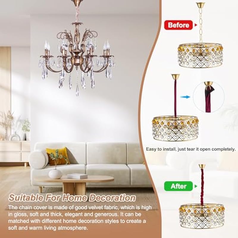- Advantage: The chain cover is made of velvet cloth material, which is soft and beautiful. Fine workmanship and firm stitching. It can also be used as a decoration while protecting the lamp holder. The chain cover has an elastic design at both ends, which makes it not easy to fall when hanging vertically.