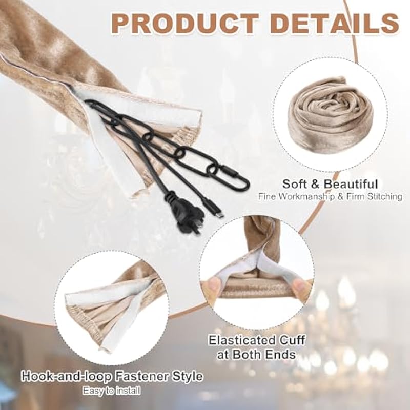 - Specification: Color: Beige; Material: Velvet Cloth; Size: 150 x 5cm / 4.9ft x 2inch (L*W); Style: Zipper; Packing List: 1 x Chandelier Chain Cord Covers