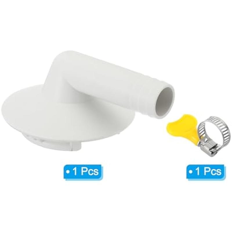- Color: White; Material: Plastic; Suitable for 42mm Drain Outlet Hole.; Diameter (Connecting Hose Size):15mm/0.59″; Connector Size: 79x58mm / 3.1×2.3Inch (L*W); Packing List: 1 x Hose Connector, 1 x Clamp