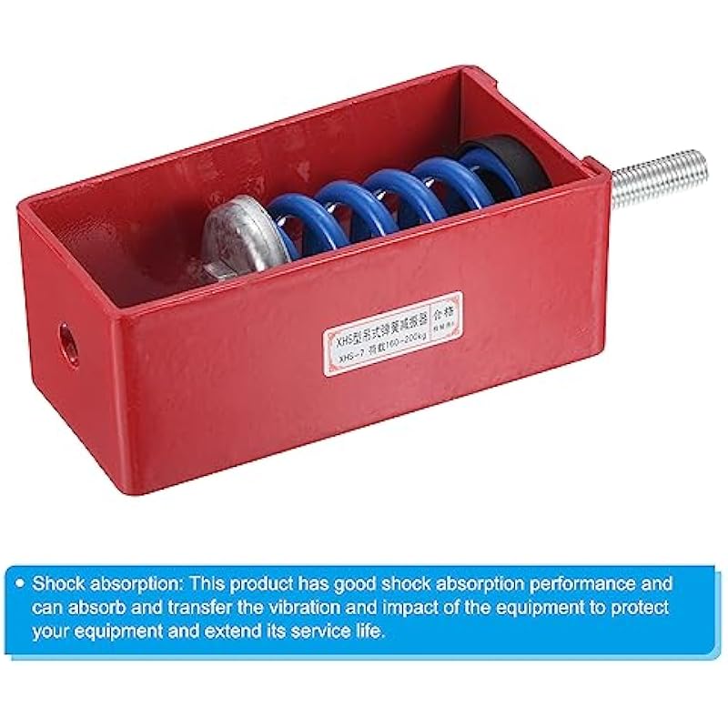 - Material: Steel, Rubber; Color: Red,Blue; Weight Max Load: 200kg / 441lbs; Bolt Size: M14; Total Size: 95x70x175mm / 3.74 inch x 2.76 inch x 6.89 inch (L*W*H); Packing List: 1 Pcs x Spring Vibration Isolators