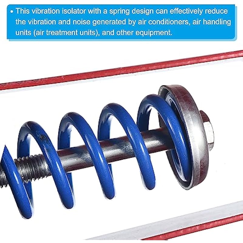 - Application: This vibration isolator with a spring design can effectively reduce the vibration and noise generated by air conditioners, air handling units (air treatment units), and other equipment. Suitable to use on places like ceilings, floors, ducts, walls, HVAC, and more.
