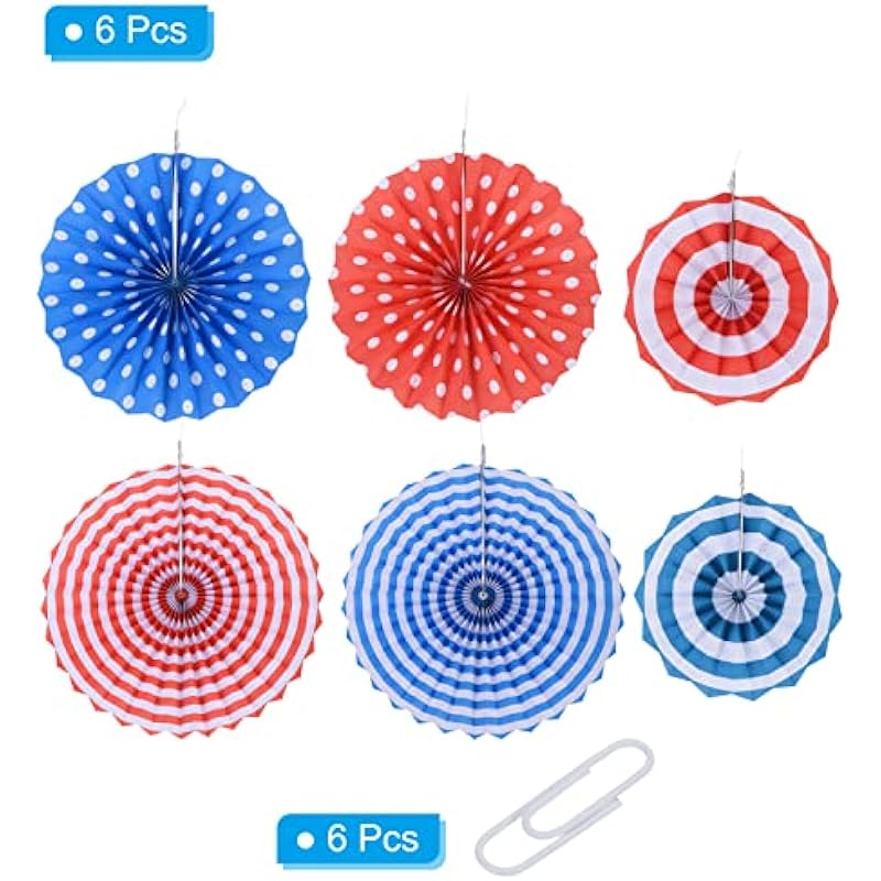 PATIKIL 8″/12″/16″ Paper Fans Hanging Decoration, 6 in 1 Set Round Honeycomb Fans for Birthday Wedding Graduation Events Party, Red Blue