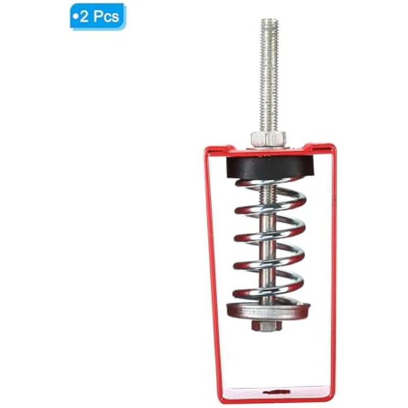 - Specification: Material: Steel, Rubber; Color: Red, Black; Weight Max Load: 45kg / 99lbs; Bolt Thread Size: M10*1.5; Hole Dia: 12.8mm / 0.5inches; Thread Length: 55mm / 2.17inches; Total Size: 65x50x128mm / 2.56×1.97×5.04inch (L*W*H); Packing List: 2 Pcs x Spring Vibration Isolators