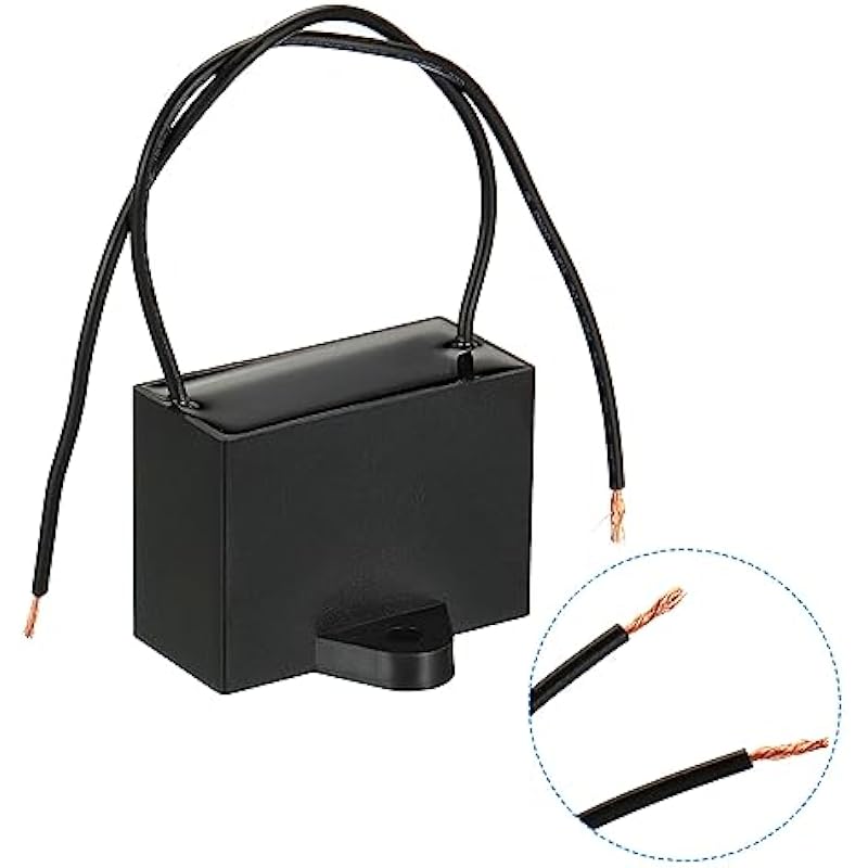 - Model: CBB61; Material: Polypropylene Film Plastic Shell; Terminal: 2 wires; Tolerance: ±5%; Rated Capacity: 15uF; Climatic Category: 40/85/21; Body Size:47 x 22 x 34mm/1.83 x 0 x 1.33inch(L x W x H); Wire Length:15cm/0.59inch; Shell Color: Black; Rated Voltage: 250V AC; Rated Frequency:50/60Hz;Switch Rated current /voltage: 3A 250V/6A 125V;Switch size:31 x 19mm/1.2 x 0.74inch(W x H); Switch Wire Length: 10cm/3.9inch;Pack of 1set ( 1pcs CBB61 Capacitor + 1pcs switch)
