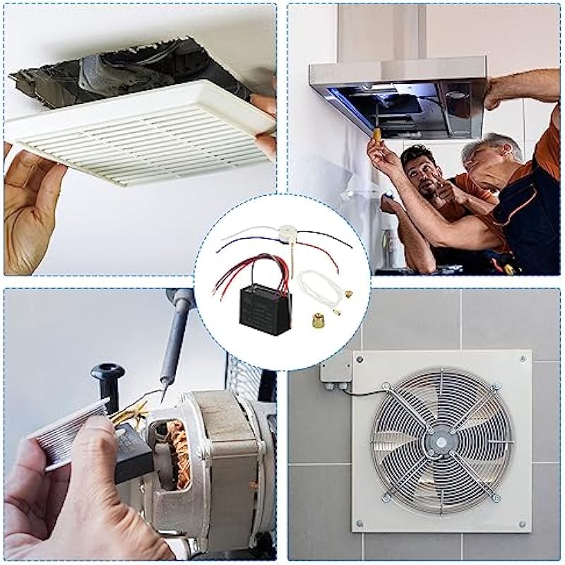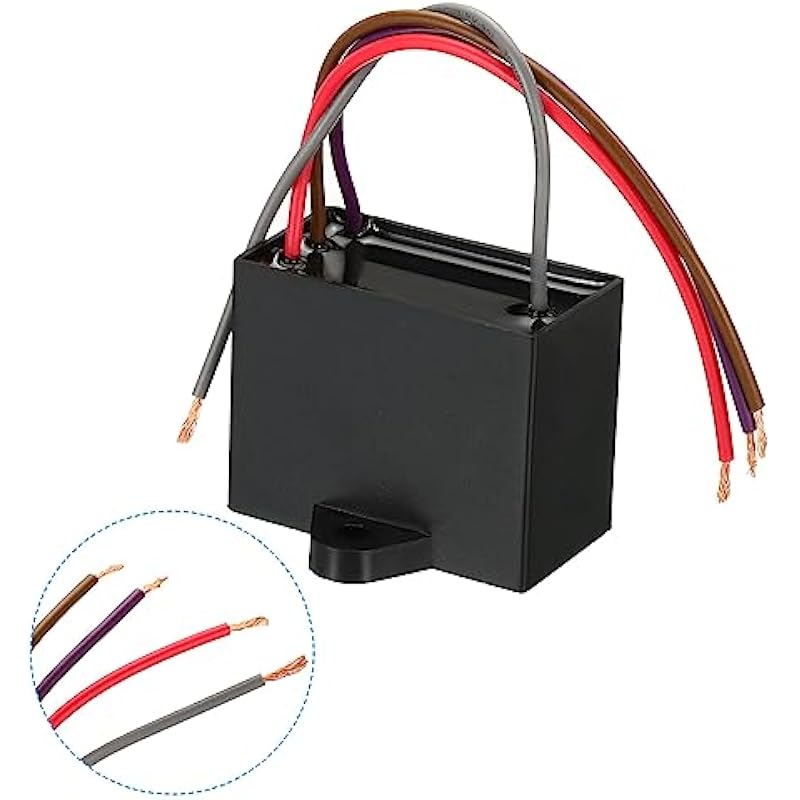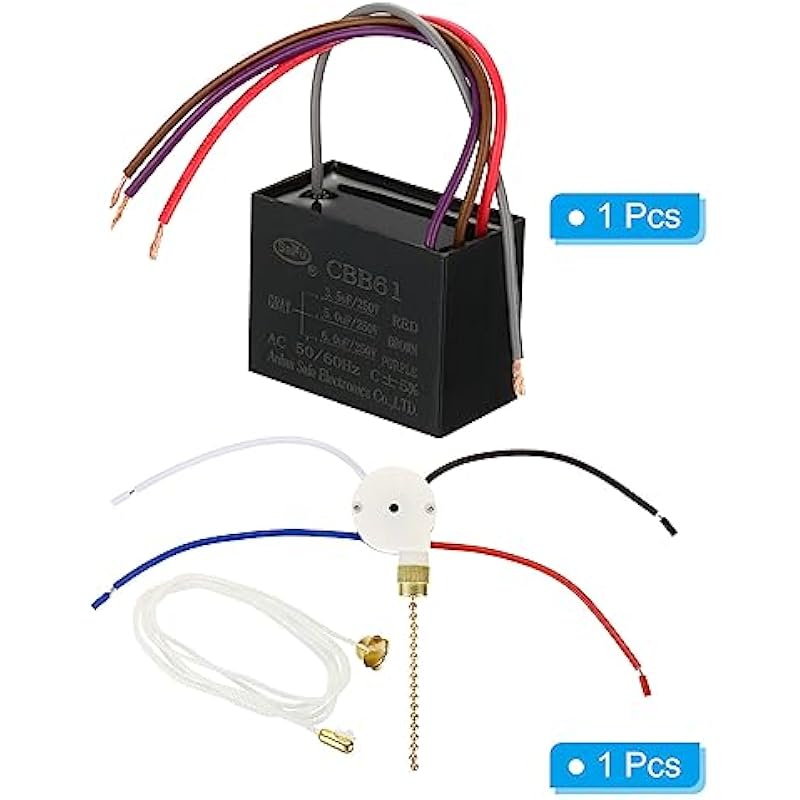- Model: CBB61; Material: Polypropylene Film Plastic Shell; Terminal: 4 wires; Tolerance: ±5%; Rated Capacity: 3.5+5+6uF; Climatic Category: 40/85/21; Body Size:48 x 26 x 38mm/1.87 x 0.51 x 1.48inch(L x W x H); Wire Length:12cm/0.47inch; Shell Color: Black; Rated Voltage: 250V AC; Rated Frequency:50/60Hz;Switch Rated current /voltage: 3A 250V/6A 125V;Switch size:31 x 19mm/1.2 x 0.74inch(W x H); Switch Wire Length: 10cm/3.9inch;Pack of 1set ( 1pcs CBB61 Capacitor + 1pcs switch)
