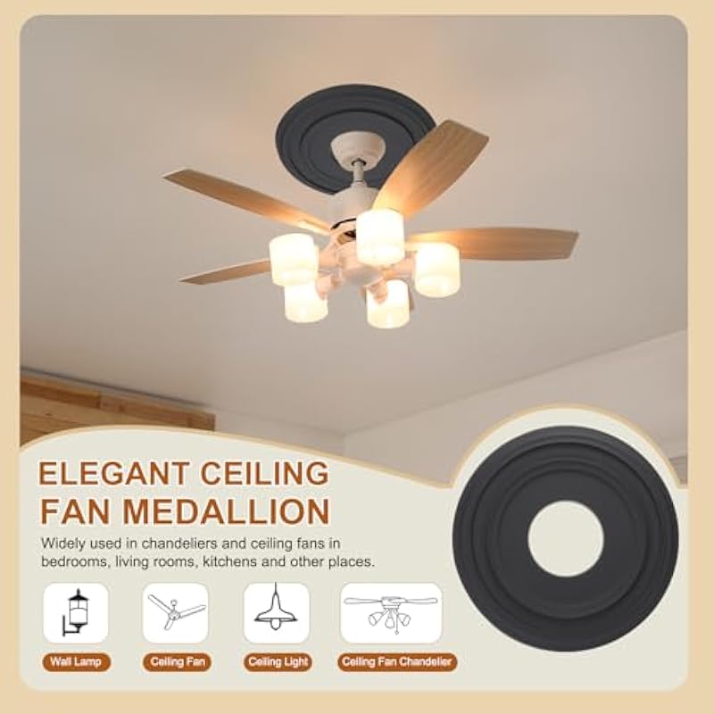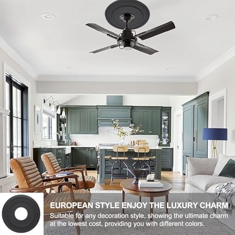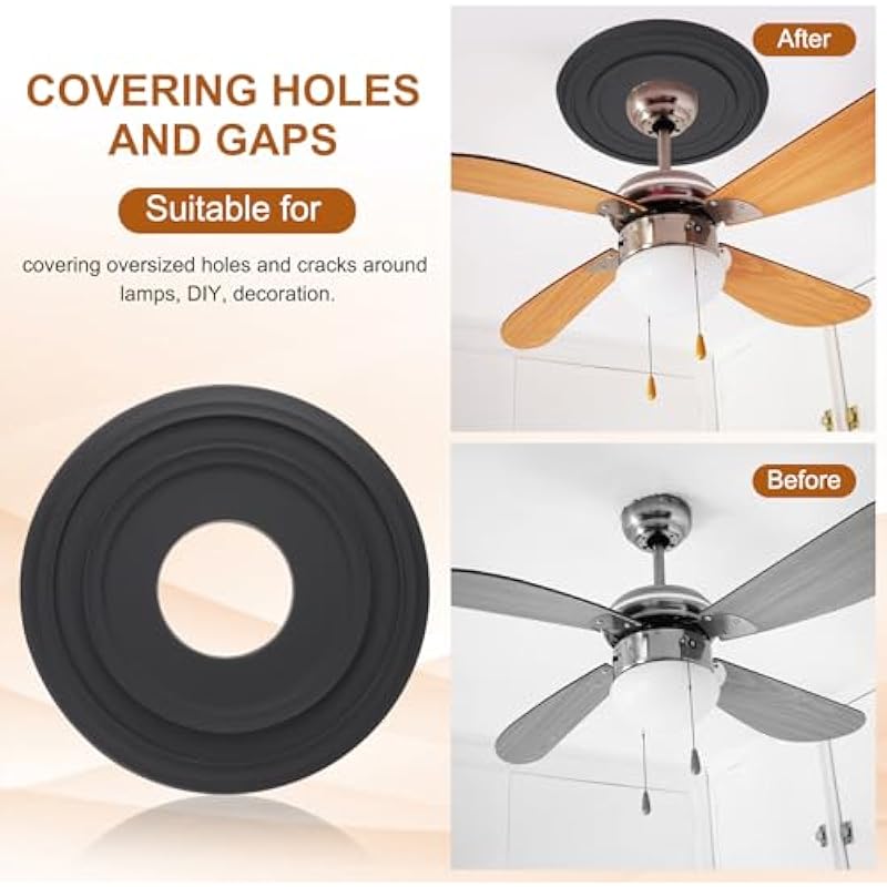 - Our ceiling medallion can flexibly cover oversized openings, holes and cracks around oversized fixtures in the ceiling. The elegant appearance can adapt to various decorative styles. They are widely used in many occasions such as ceilings, ceiling fans and lamps, suitable for DIY decoration. Instant renovation with minimal time and effort.