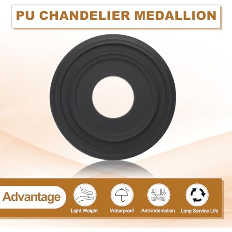 - Advantage: The ceiling medallion is made of good PU material, which is light and will not exert great pressure on the ceiling. the product is dense, pressure-resistant, durable, long service life, and is not easy to crack. The ceiling medallion have neat and smooth edges, exquisite and elegant patterns, and are highly decorative, providing an elegant decorative background for chandeliers and lighting fixtures. This product can be matched with other decorations to add a touch of different charm t