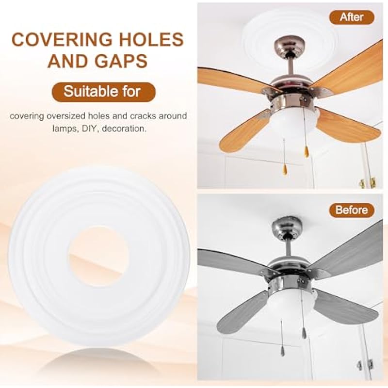 - Our ceiling medallion can flexibly cover oversized openings, holes and cracks around oversized fixtures in the ceiling. The elegant appearance can adapt to various decorative styles. They are widely used in many occasions such as ceilings, ceiling fans and lamps, suitable for DIY decoration. Instant renovation with minimal time and effort.