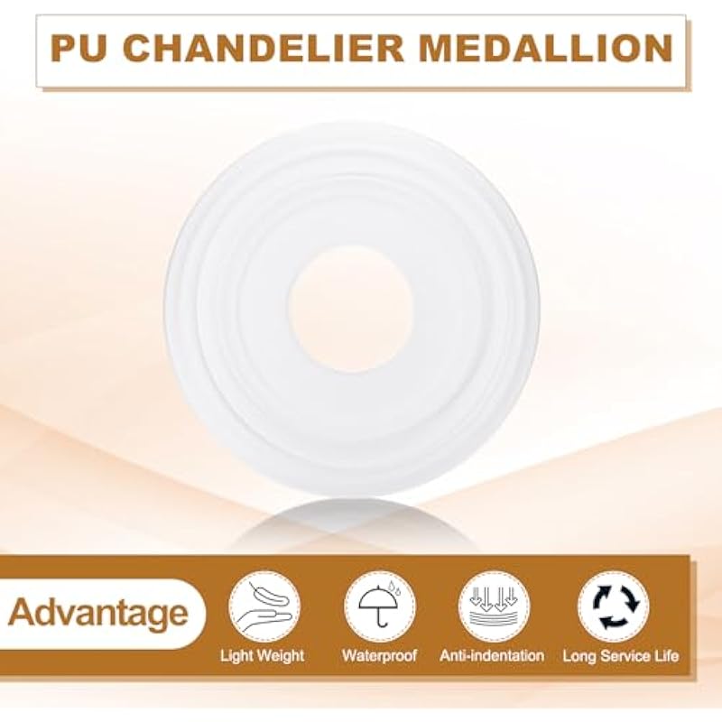 - Advantage: The ceiling medallion is made of good PU material, which is light and will not exert great pressure on the ceiling. the product is dense, pressure-resistant, durable, long service life, and is not easy to crack. The ceiling medallion have neat and smooth edges, exquisite and elegant patterns, and are highly decorative, providing an elegant decorative background for chandeliers and lighting fixtures. This product can be matched with other decorations to add a touch of different charm t