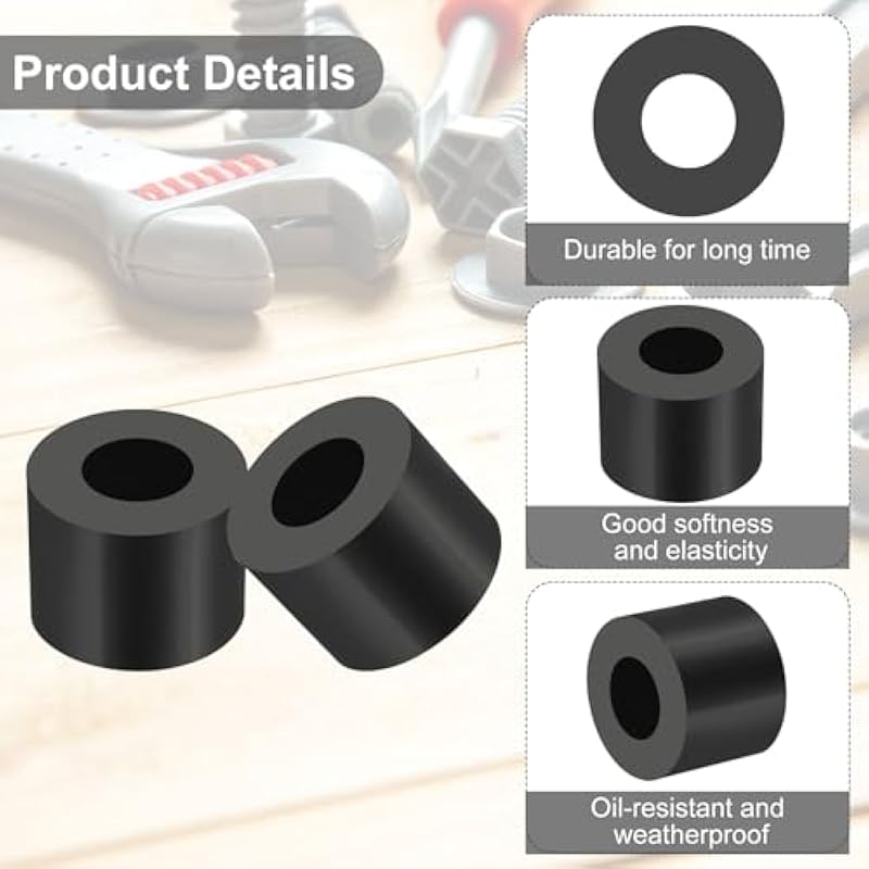 - Specification: Color: Black; Material: Rubber; Size: 16 x 32 x 25 mm/ 0.6 x 1.3 x 1 inch(ID*OD*T); Packing List: 4 Pcs x Multi Purpose Rubber Spacer.